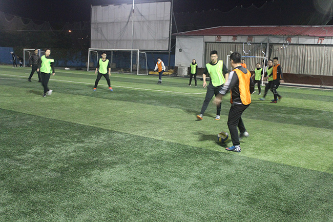 當(dāng)晚,雖然冷風(fēng)起舞,但也抵擋不住大家的足球熱情,美輪美奐的臨沂電視塔下兵峰訓(xùn)練基地人聲鼎沸,熱火朝天。按照賽程規(guī)則,北城一隊(duì)和三隊(duì)、北城二隊(duì)和四隊(duì)分別捉對(duì)廝殺,上演精彩對(duì)攻大戲,爭(zhēng)奪最后的冠軍。而拉拉隊(duì)員們也激情滿懷的的支持各自的球隊(duì),加油聲此起彼伏,聲勢(shì)驚人。